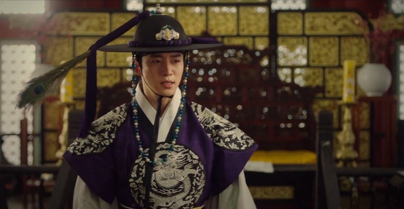 世孙的造型,大多以蓝色、紫色、绿色系为主,与君王代表的红色做出区别。出现在德任面前的时候,是比较轻松的剧情,因此世孙穿的经常都是颜色比较淡的蓝色、绿色常服,这几套都凸显了世孙身上的少年气,也让世孙身上的压迫感没有那么重。