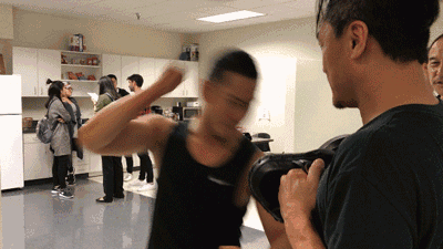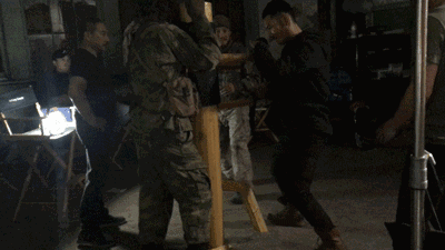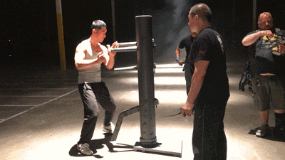 不管是幕前幕后,一群外国工作人员都会看到黄晓明和一座木头桩“杠上了”,从刚开始独自练习,再到后期需要人为扶住木桩,黄晓明的咏春拳法在不断进步。