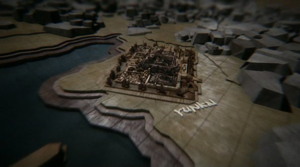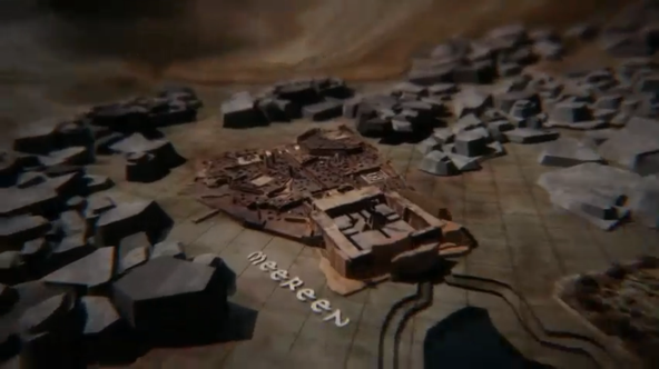 第一个画面就有戏!这个场景说的是瓦雷利亚的覆灭。瓦雷利亚是《冰与火之歌》中的一座古代城市,也是整个冰与火世界中最雄伟最让人惊叹的城市,"后无来者"不好说,但绝对是"前无古人"的。瓦雷利亚本来位于厄斯索斯大陆的瓦雷利亚半岛上,是瓦雷利亚自由堡垒帝国的首都。帝国的统治者借助高度发达的文明,以及用魔法驾驭的巨龙统治着当时的世界。坦格利安家族就发源于此。但是,一场被称作"末日浩劫"的灾难毁灭了瓦雷利亚,并撕裂了整个大陆。但这个不朽帝国的遗迹依旧留存了下来,诸奴隶城邦几乎都说瓦雷利亚语的某个变种,连接整个厄斯索斯大陆的宽阔大路都是它曾经存在的明证。这个画面,说的就是末日浩劫。