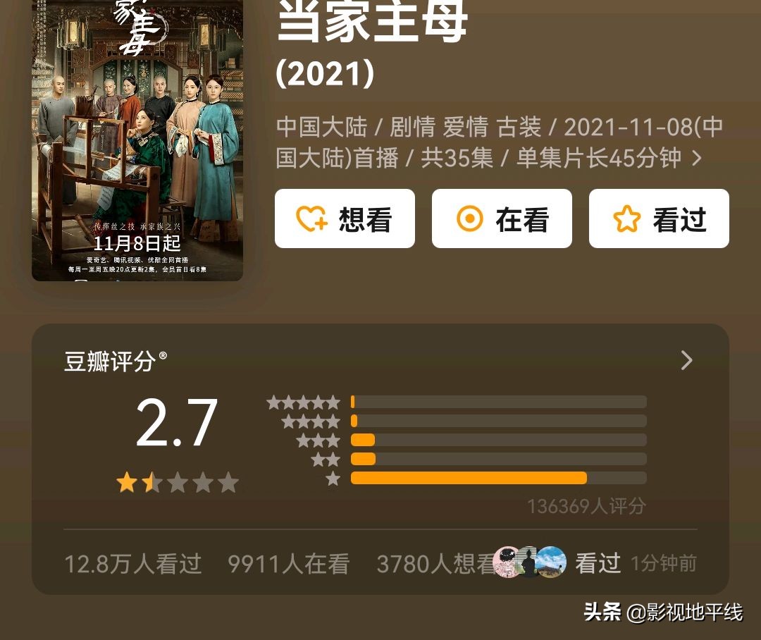 不过,有时候也会因为某些事情,而绕开故事本身去直接刷差评,比如因为毒猫事件而口碑大跌的《当家主母》。