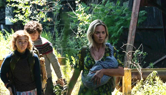 在第一部中,女主人公伊芙琳的丈夫看到怪兽袭击孩子的那一刻,用声音吸引了怪兽的注意力。孩子是得救了,可这是用父亲的生命换来的。