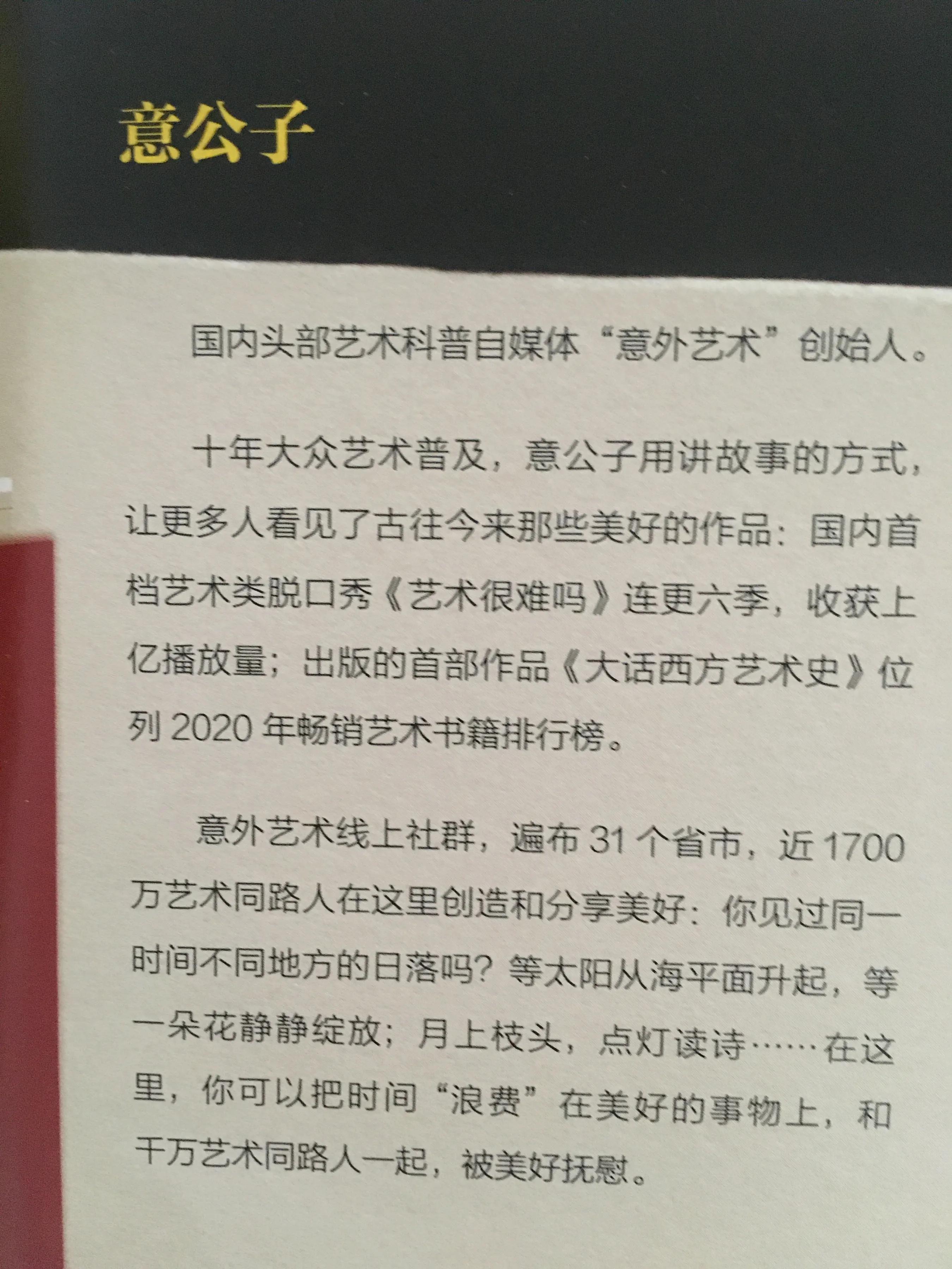 01.认识名人,意外连连所谓艺术,无外乎书画雕刻;擅长艺术,可谓多才多艺。在历史上,有许多人,给我们留下了独特的艺木品,令人惊慕不已,流芳百世。但在《大话中国艺术史》中,意公子给我呈现了人物另一面,真是意外到大跌眼镜。