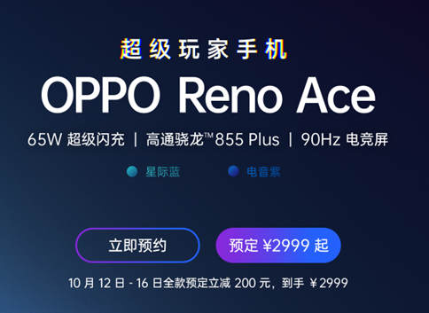 这样的神器,在10月17日就可以官网预定了,领券还可以立减200抢先购,这样算下来新机只需2999元起,实在让人心动。它于17日凌晨,抢先购活动正式开启,领券立减200元,性价比极高。根据数据统计,该机小试牛刀仅仅5分钟销售额就已破亿,一举夺取3000-3500价位段销量第一。而在11月1日,oppo reno ace也将迎来正式首销!