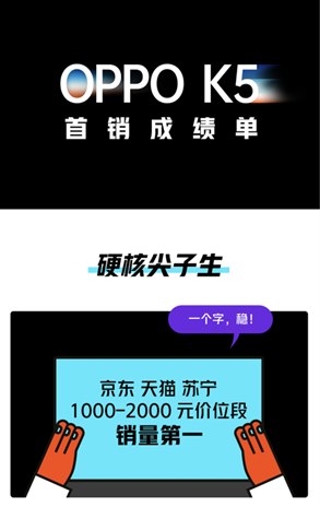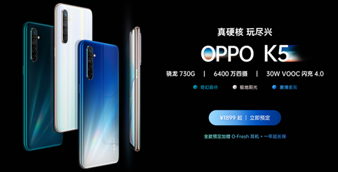 跟oppo reno ace同期产出的还有一款oppo k5,同样创意十足,拥有vooc 4.0、6400万超清四摄、3200万超感光人像、高通骁龙730、光感屏幕指纹3.0等配置,从官网发布的价格来看也是性价比超高,预算稍低的小可爱也可以考虑这款哟!而这款硬核尖子生#oppo k5#也不负众望!截止10月17日10点,京东、天猫、苏宁1000-2000元价位段销量第一!