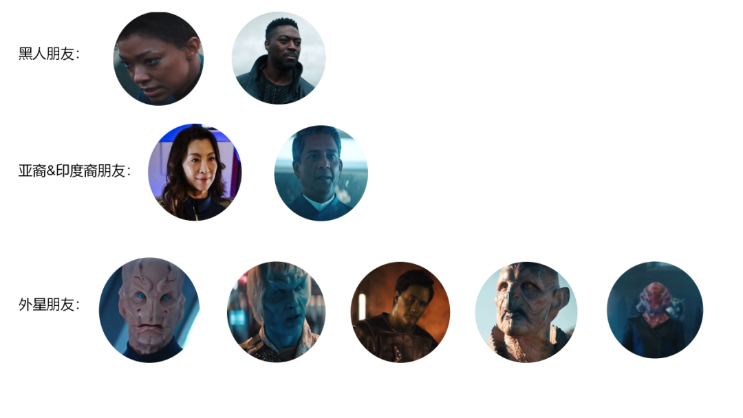 女主是迈克·伯纳姆,选角上也继承了《星际》优良传统……种族平等大联欢。