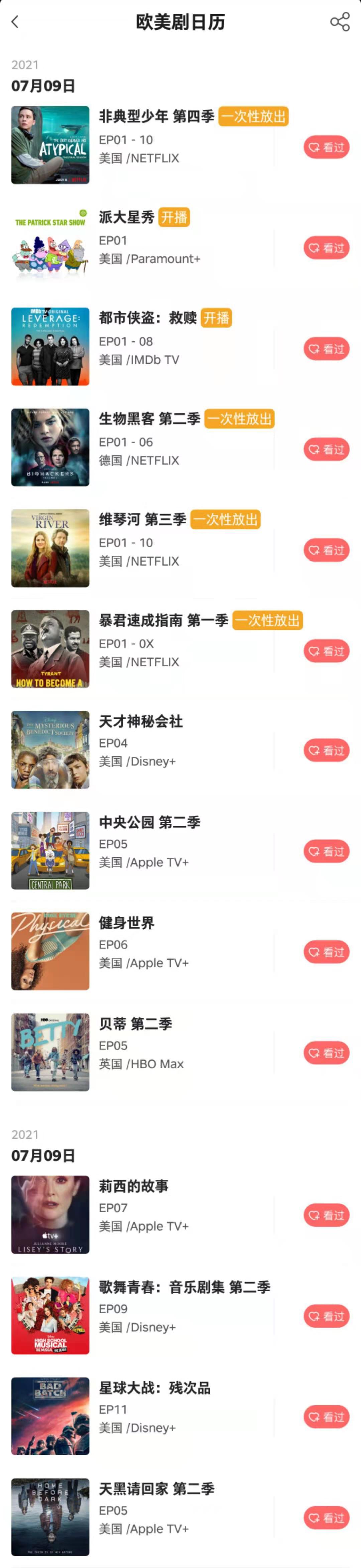 记艺app - 7月9日 欧美剧日历