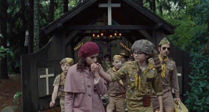 和心爱的人私奔,你为他读书,他为你做甲壳虫耳环,在无人踏足的地方扎营,在沙滩上合着黑胶唱片跳舞亲吻。韦斯安德森童心未泯的大男孩人设,在拍孩童恋情这种有些禁忌的题材时才游刃有余。
