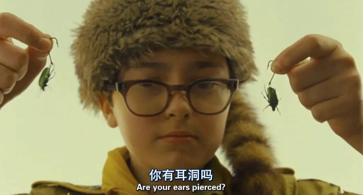 在影片中一个画面,男孩送给女孩一对“甲虫”耳环,随后女孩淡定的将针递给男孩,让他现场给自己戳一个耳洞(果然是孩子行为),当时看到这一幕真的是吓死了,不过看女孩大喊大叫的反应,应该很痛,可是当她戴上一只耳环,血迹顺着脖子留下来,女孩急急忙忙的举起镜子观摩,那一瞬间,绝美。