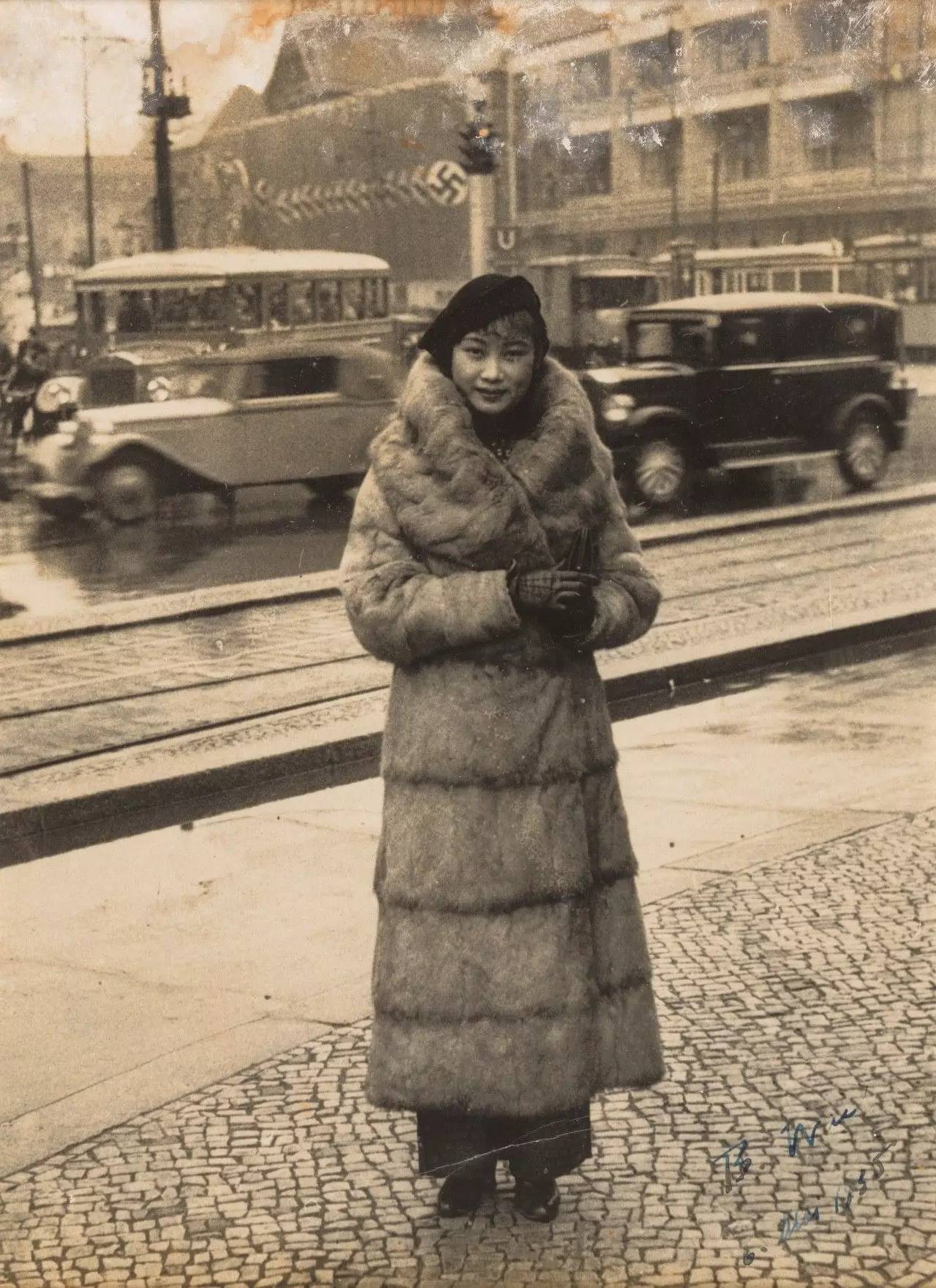 1935年胡蝶应柏林记者之邀请,在当地街道上留影。