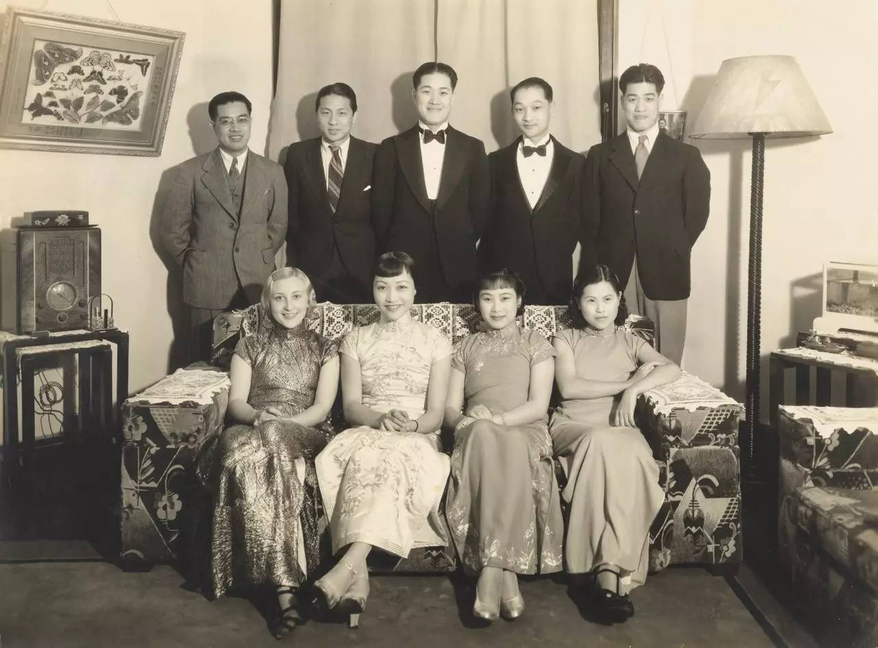 1936年胡蝶在家中招待黄柳霜。(一排左二)