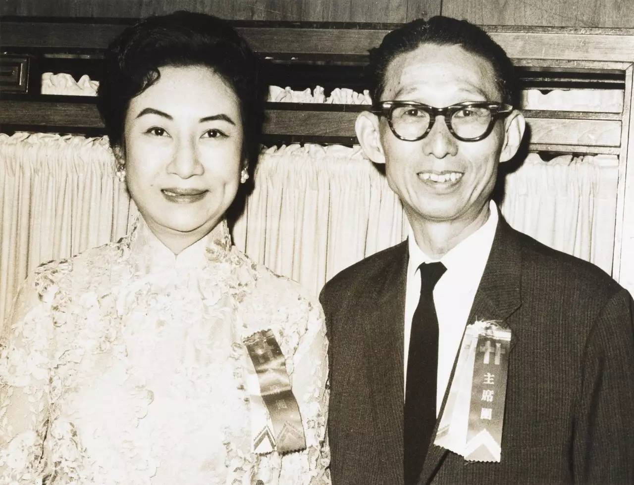 1960年代胡蝶与著名编剧、制片人朱旭华合影。朱旭华曾担任香港大中华影业公司厂长、永华影业公司厂长、《南国电影》总编辑。