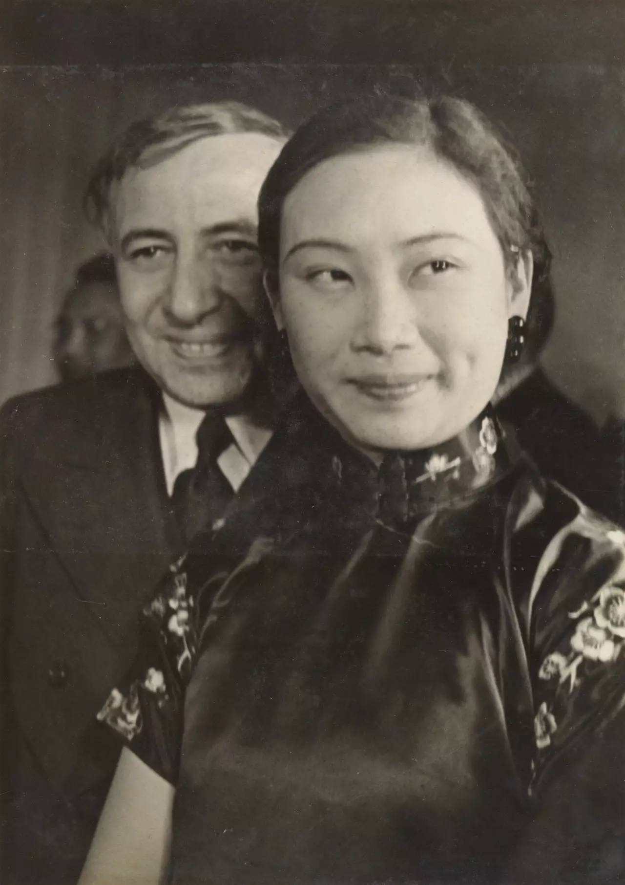 1935年苏联对外文化协会欢宴时与苏联女明星奥格洛娃合影。