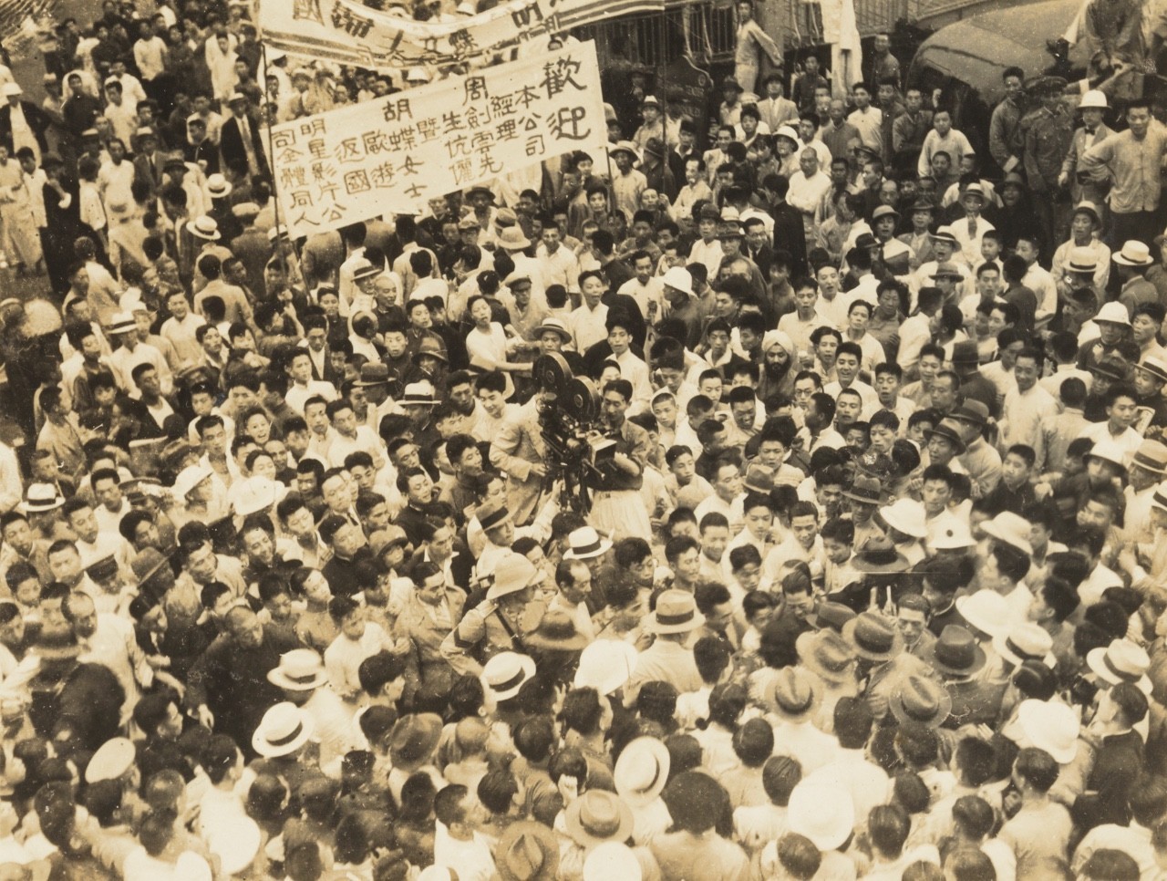 1935年7月8日胡蝶从香港乘麦坚尼总统号回到上海,江海关码头前热烈欢迎胡蝶的群众。