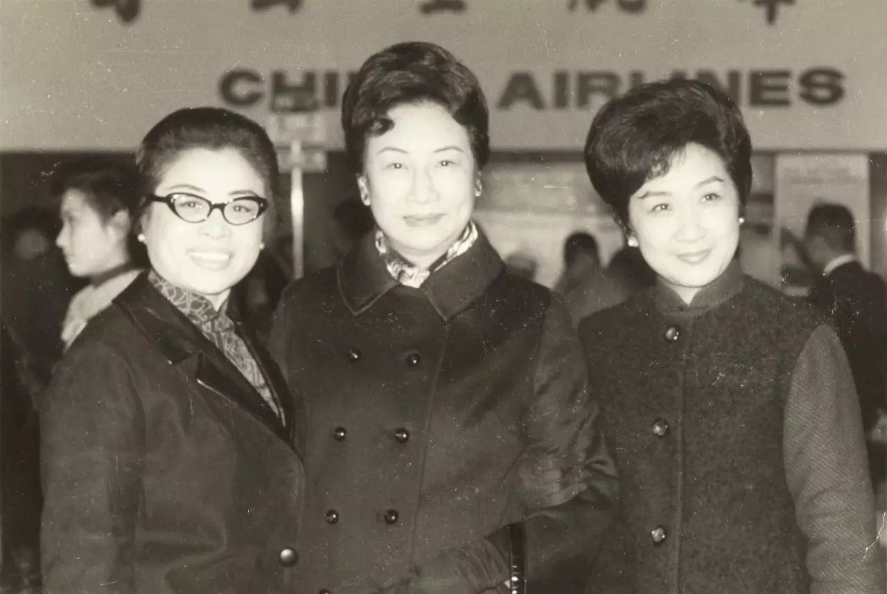 胡蝶与制片人童月娟(左)、电影明星周曼华(右)合影,三位老上海的电影人在台湾相聚。