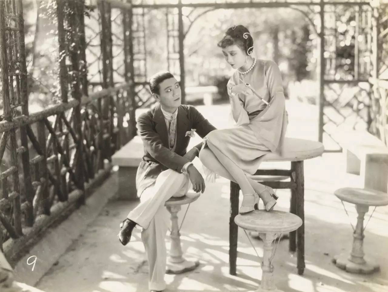 1928年王吉亭和胡蝶主演电影《女侦探》剧照。明星影片公司出品,张石川导演。