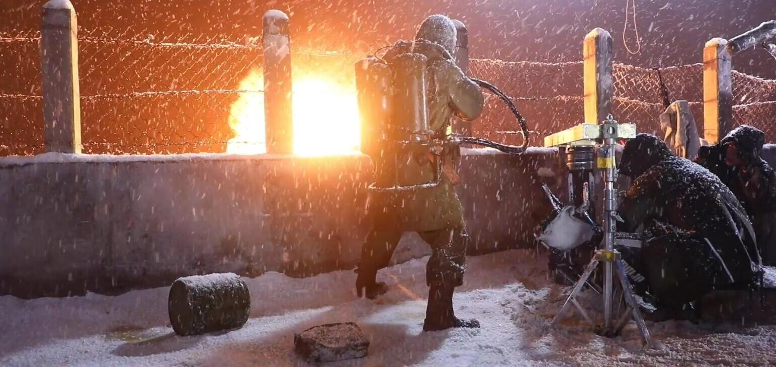 志愿军袭击长津湖的时候,战士们还遭遇了恐怖的喷火兵。历史上当时美军在朝鲜战场上大量使用m2a1-2型火焰喷射器,不过在影片里喷火兵的镜头被删得干干净净。