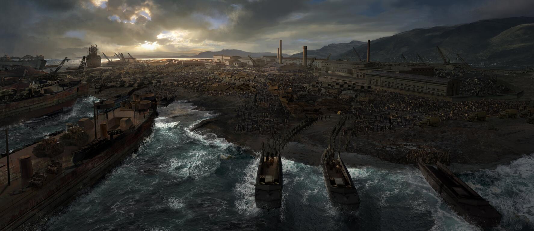根据影片的概念画,原本应该有大量美军丢盔弃甲,匆忙登船的大场面。这个被删了有点可惜,美军大撤退的镜头没了,削弱了氛围。