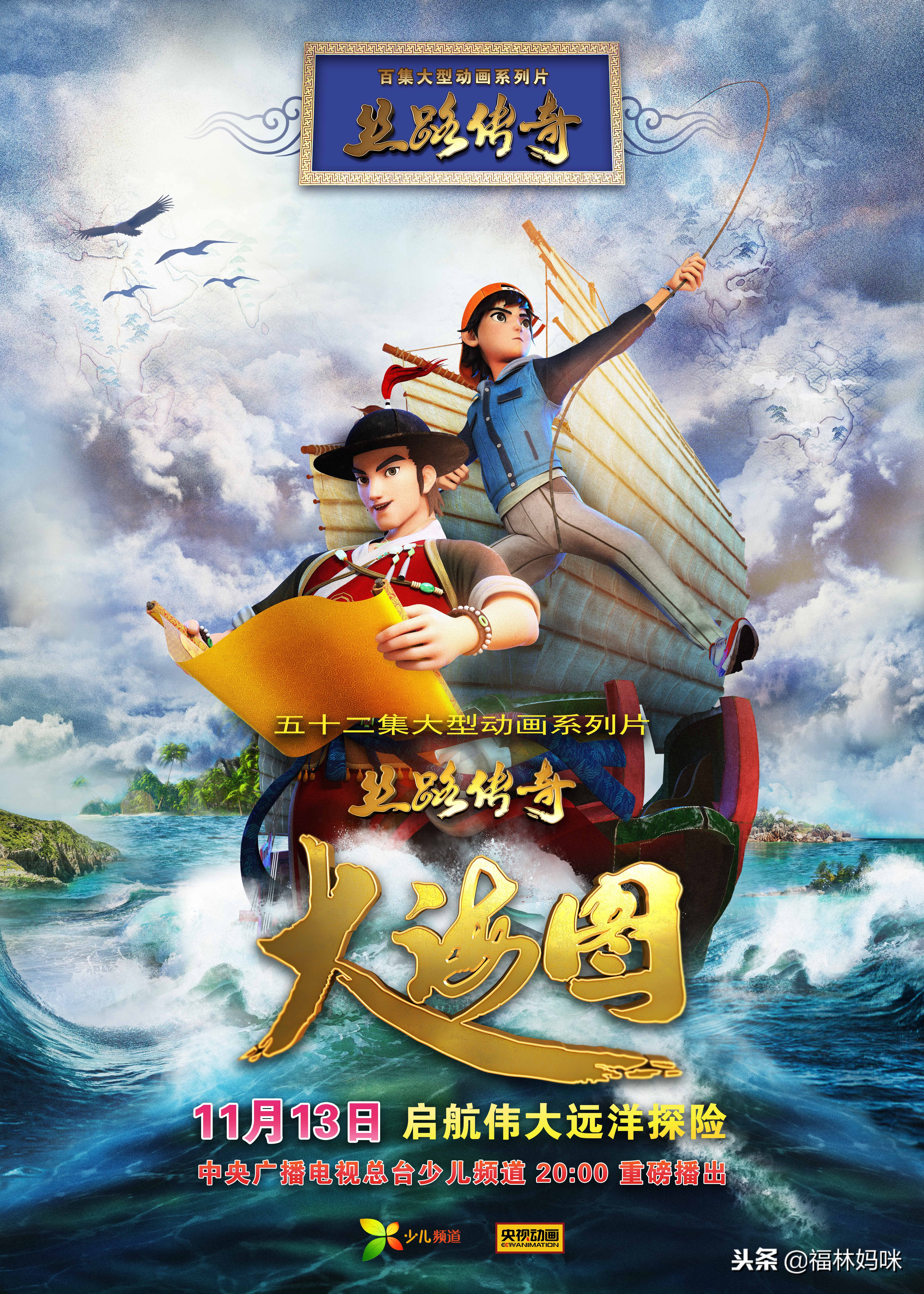 11月13日晚8点起,《丝路传奇大海图》就将在中央广播电视总台少儿频道《银河剧场》栏目晚间黄金档播出,每天两集,一起来感受海上丝路的传奇之旅吧。