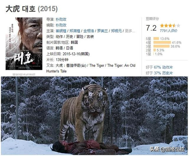 亮点:这只长4米、重400公斤的大家伙,是活跃在朝鲜日治时期的最后一只老虎,亦敌亦友的大猫将“撕鬼子”的技能发挥到了极致。