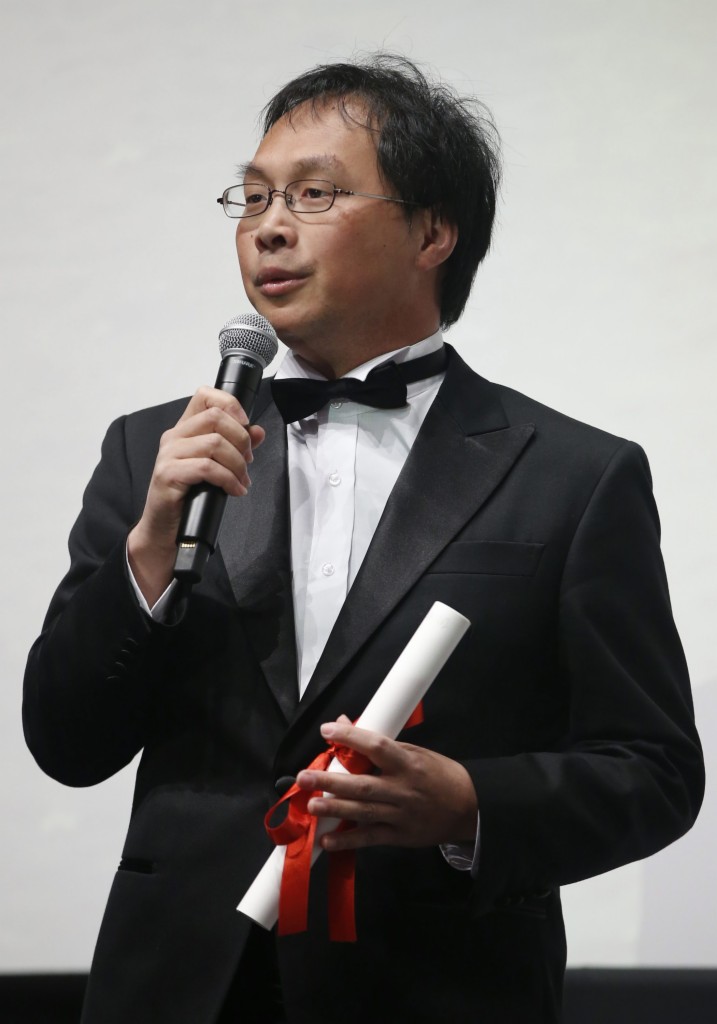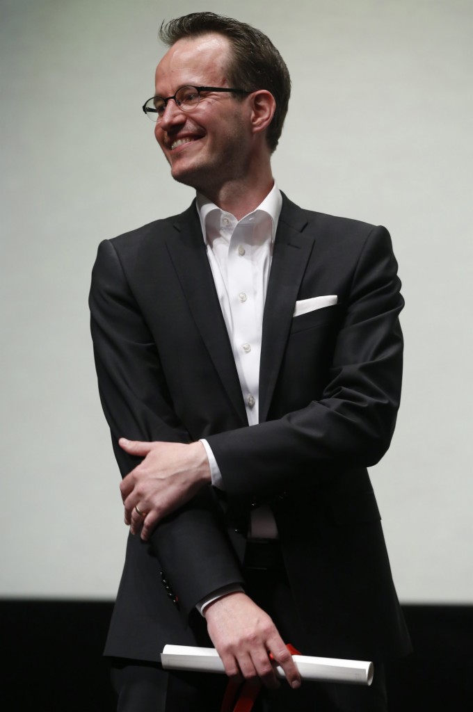 5月21日,在法国戛纳,日本芬兰导演深田晃司登台领奖。当日,第69届戛纳电影节“一种关注”单元奖项揭晓,深田晃司执导的影片《临渊而立》获得评委会奖。新华社外代图片 北京2016年5月22日 新华社/欧新中文