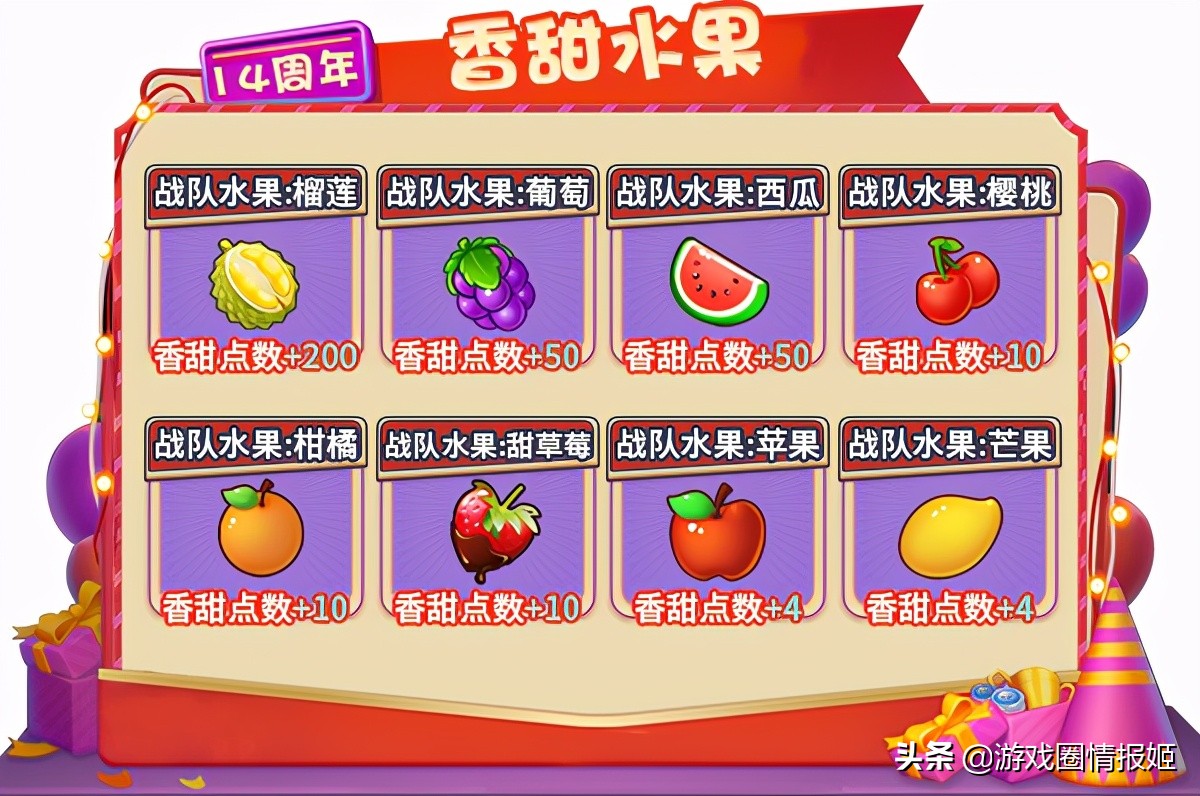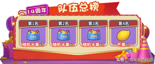 4、 需通过“香甜点数奖励”获得“水果通行证”后才能获得“队伍总榜”奖励;