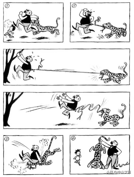 情急中,老呆看到前方有棵树,便疾速朝树下跑去,他两手抱住树干,手脚并用,想爬到树上,摆脱豹子的追赶。谁料想豹子死死咬住裤腰带就是不松口,还使劲往回拽,老呆往上爬,豹子往回拽,这样僵持了十来分钟,老呆终究敌不过豹子的力气,被豹子从树上拽了下来。
