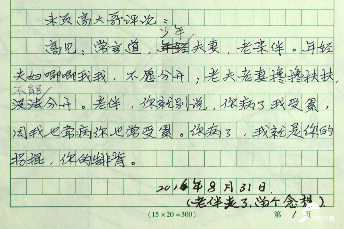 吴国梁介绍说,他们这代人,结婚对象大都是经人介绍,到了适婚年龄就结婚了,就跟完成任务似的。吴国梁坦然婚后的生活就是平平常常、简简单单,没有现在年轻人轰轰烈烈的爱情。当老伴儿叶秀云查出癌症,知道她要走了,吴国梁心情变得很沉重。