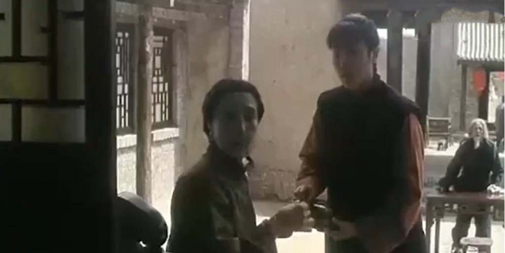 得知新娘遭土匪劫走,柳家少爷转身跑进屋内,爬上房梁准备摘枪取火药,去白风寨抢回新娘。