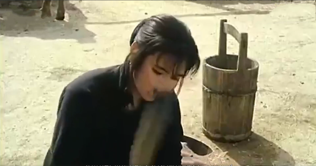 这天,少奶奶在石槽前洗衣服,五魁上前帮忙。