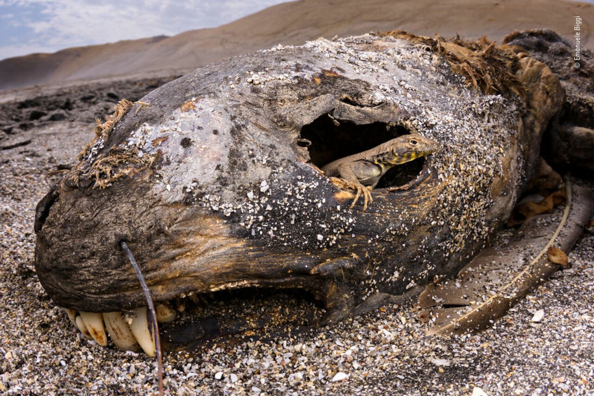 埃马努埃莱沿着海滩散步时,腐烂的海狮尸体散发出的恶臭几乎让人难以忍受。他见过昆虫以尸体为食,但当他看到鬣蜥吃昆虫时,他知道他发现了一些有趣的东西。他躺在沙子上,被恶臭的气味呛住了,他抓住了这只鬣蜥从眼窝里窥视。帕拉卡斯国家保护区的海滩附近有15000只南美海狮,是那些因疾病或受伤而死亡的海狮的墓地。其他人死于厄尔尼诺引发的偶尔的大规模事件,那里的海洋温度暂时上升。鬣蜥在这里的沙子上生存,那里几乎没有植被生长,而是以昆虫为食。