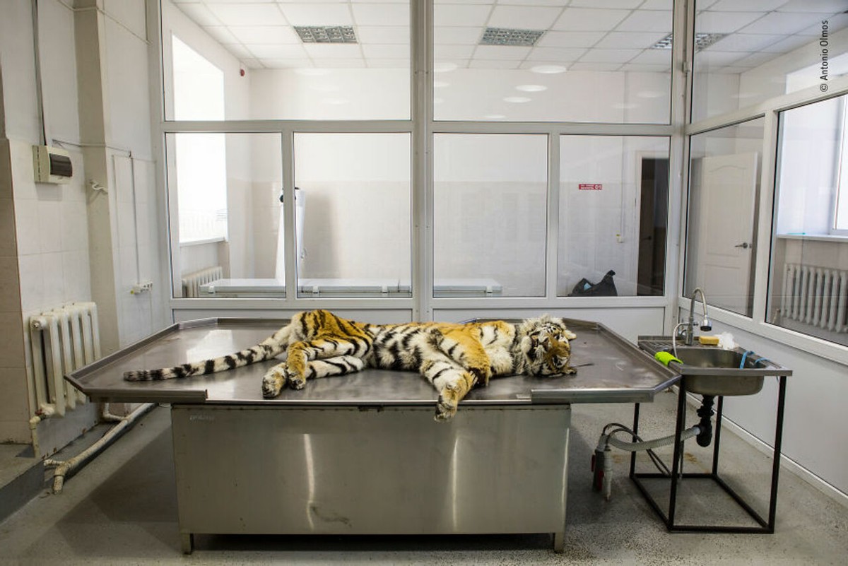 一只年轻的西伯利亚母老虎被放了出来,等待尸检。它瘦弱的身体在一辆车下被发现,缺少一只前爪。毫无疑问,它在被偷猎者的陷阱抓住后咬掉了自己的脚。不能捕猎,它会慢慢饿死。对安东尼奥来说,看到这样一只雄伟的动物沦落到这种地步令人心碎。西伯利亚虎几乎被猎杀到灭绝,野外仅剩360只。尽管在过去的几十年里被列为濒危物种,但它们的数量继续下降,因为它们被偷猎者猎杀,它们的家园因森林砍伐而丧失。人类的漠视继续使老虎数量急剧减少,使它们的命运岌岌可危。