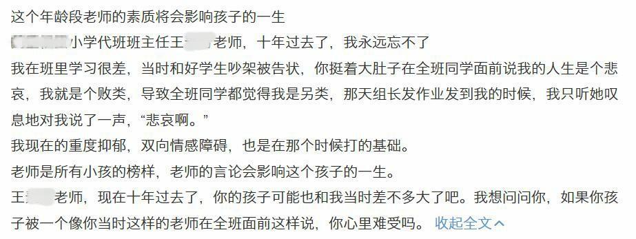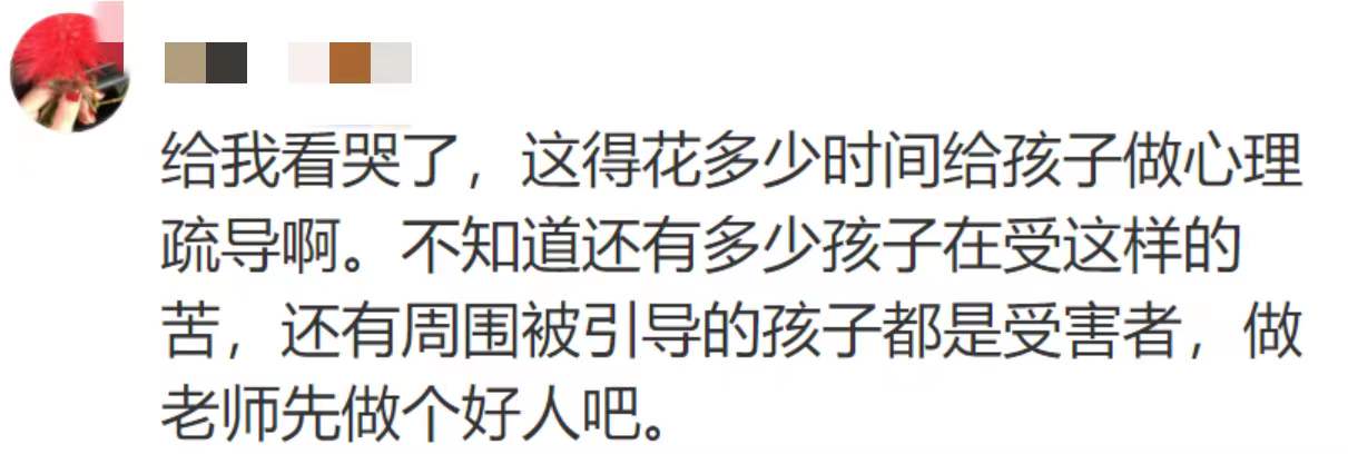 部分老师引导群体情绪而不自知,被引导的孩子们很容易指责他人、推卸责任、失去同理心...在潜移默化中养成倾向于欺负、孤立他人的心理。