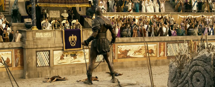 其实看过电影的人都应该发现了,在维苏威火山爆发的那一天,正好是角斗比赛,那天的比赛已经失去了角斗的真正还以,而是一场接着比赛名义的大屠杀。