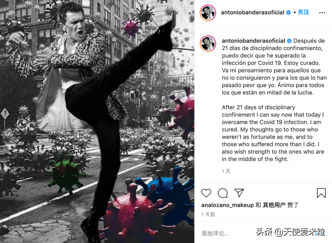 不过好在他本身只是轻症,加上经常锻炼,身体素质比较好,转眼21天隔离期结束,班德拉斯也在社交媒体上宣布自己痊愈的好消息。