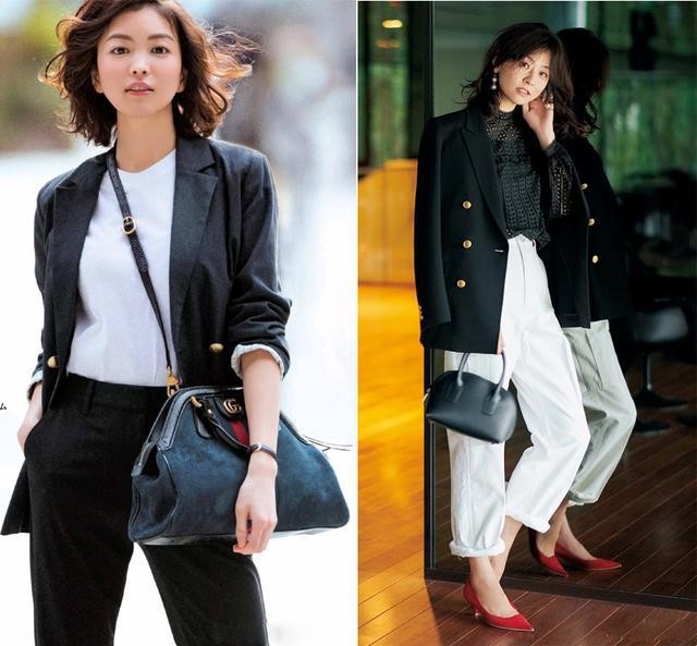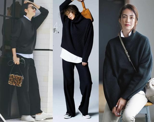 对于身材稍微有点微胖的成熟女性们来讲,这种黑多白少的搭配方式是非常简单又非常实用的,低调简单又显瘦。