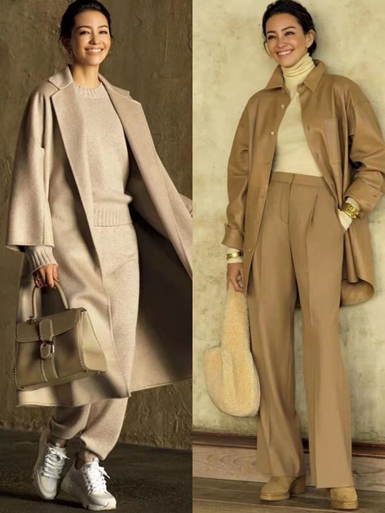 尤其是对于那些色彩驾驭能力不是非常强,或者是时间比较紧张的成熟女性们,在穿搭的时候想要降低搭配难度或者是节省时间的话,一定要学会这种基础简单的同色系搭配的方式,简约低调又节省时间。