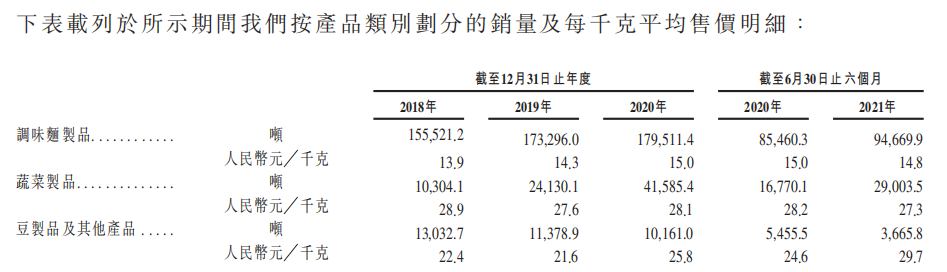 招股书中也披露出了卫龙产品的价格变化。数据显示,2018年到2020年,以辣条为主的调味面制品、豆制品及其他产品两个品类的平均售价都出现了明显上涨,一个从2018年的13.9元/千克上涨到了2020年的15元/千克,另一个则从22.4元/千克上涨到了25.8元/千克。不过,2021年上半年,调味面制品的价格又从15元/千克,略微降低到了14.8元/千克。
