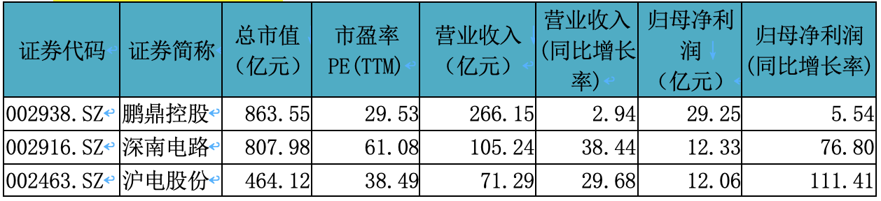比较来看,沪电股份与深南电路的归母净利润相差无几,而总体市值却只是深南电路的一半。