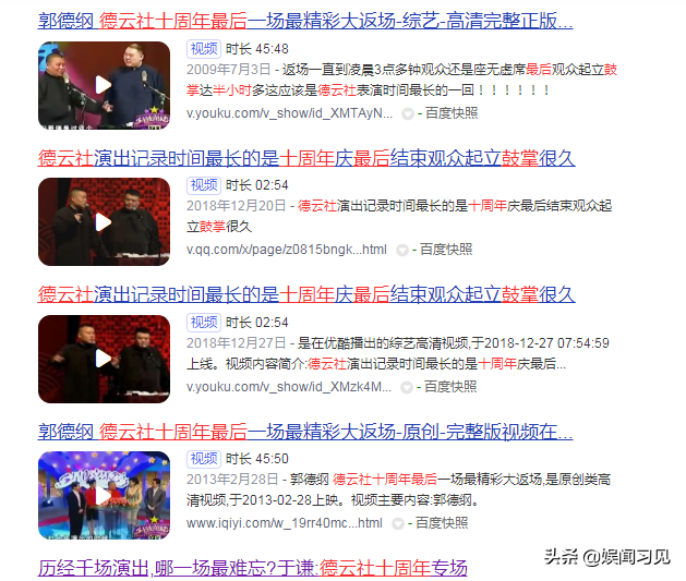 据于谦自己说,十周年庆典演出到夜里三点多,就这在散场时全场观众站起来鼓掌没有离开座位的,时间长达半小时左右。这次演出,也是德云社和郭德纲最有底气的一次演出。