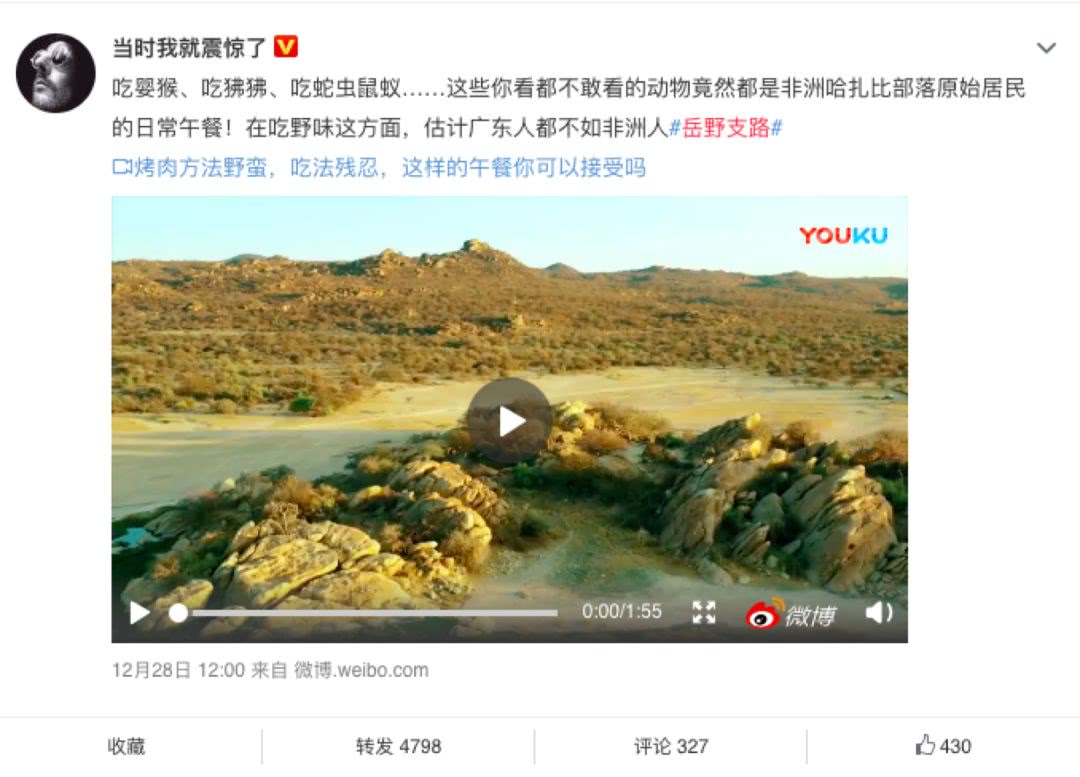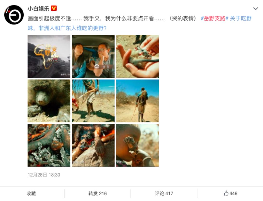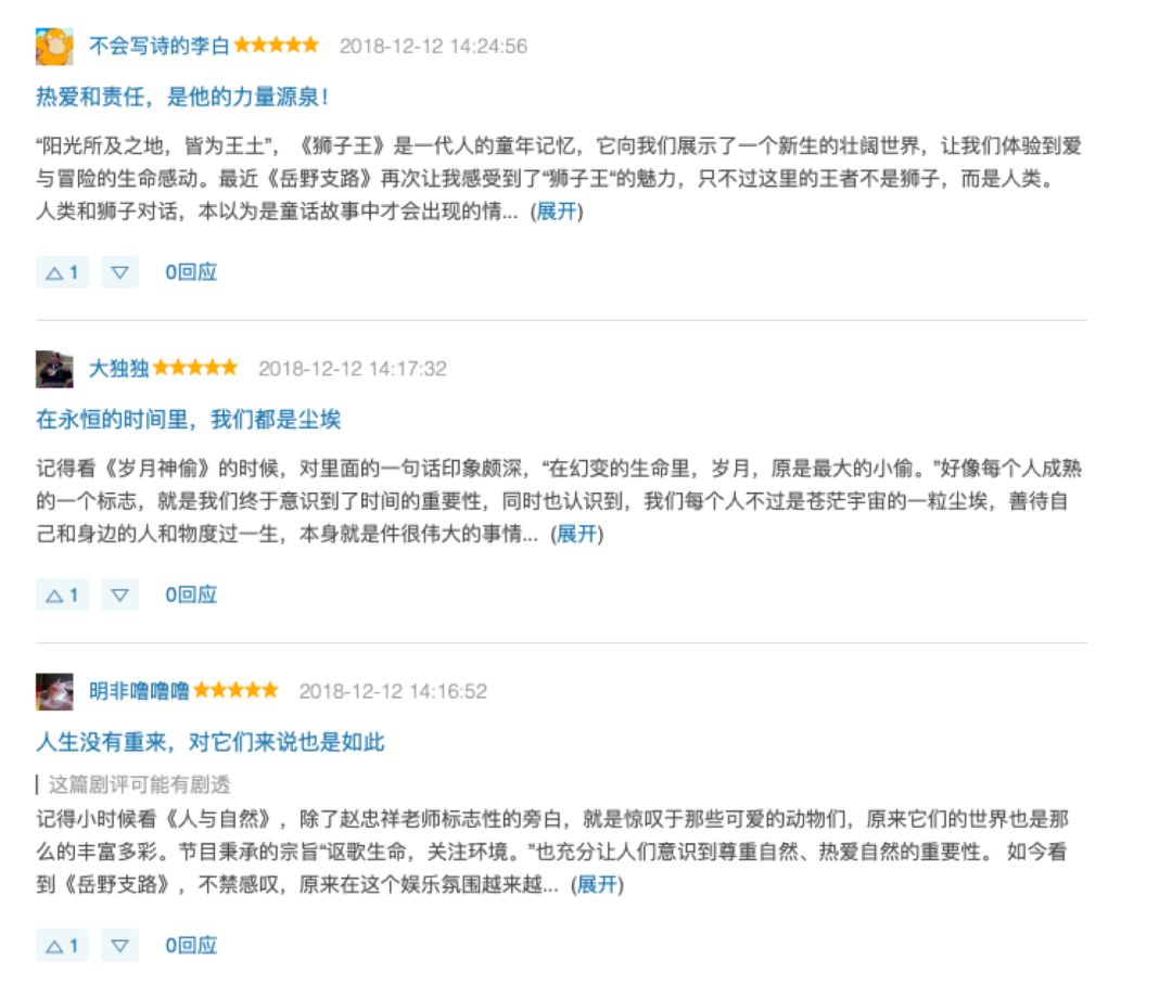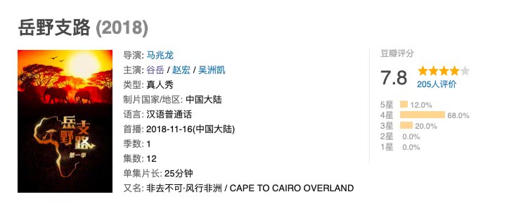 时间如白驹过隙,《岳野支路》第一季“非去不可,风行非洲”行程也已过半,节目以精良的制作水准和走心的内容获得观众的认同,在豆瓣获得7.8的高分,在豆瓣讨论区中,网友们也十分活跃,对节目内容纷纷发表自己的想法和见解~