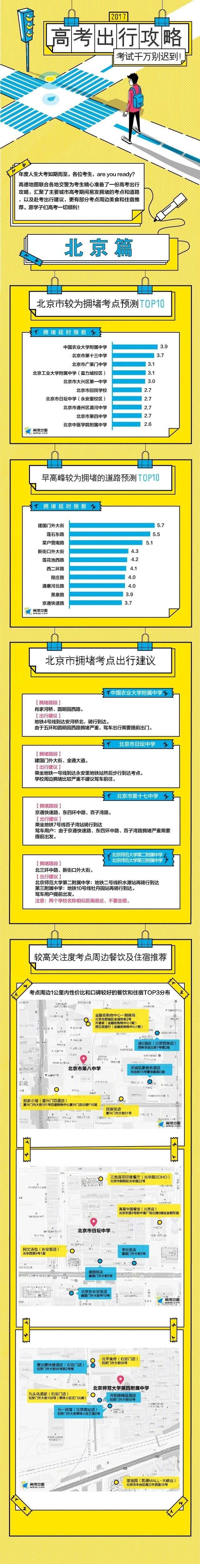 考生在高考期间的出行依然是全社会关注的重点。为帮助考生及家长顺利出行,6月5日,高德地图联合北京、上海、广州、深圳、重庆、济南、苏州等多地交警,发布了《2017高考出行攻略》。