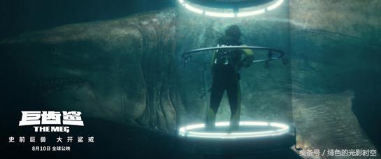 但这一次,居然投放了一个玻璃状的封闭笼子,很新奇,巨齿鲨几番顶撞,它都没裂,但待在里面的李冰冰已经是来回翻滚,由于是透明的笼子,观众能从外部看到笼内的情形,影片拉了个远景,我们看到的就是小笼子里冰冰在摇摆,旁边是大的吓人的巨齿鲨,场面很给力。