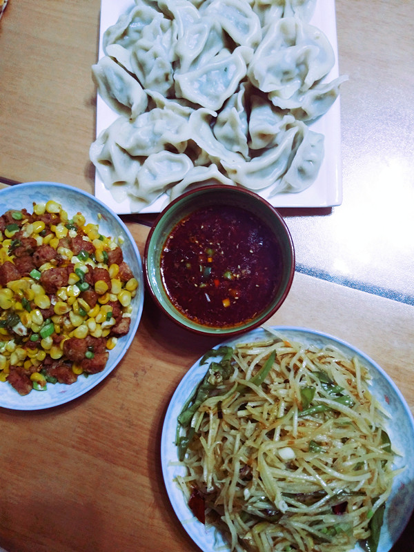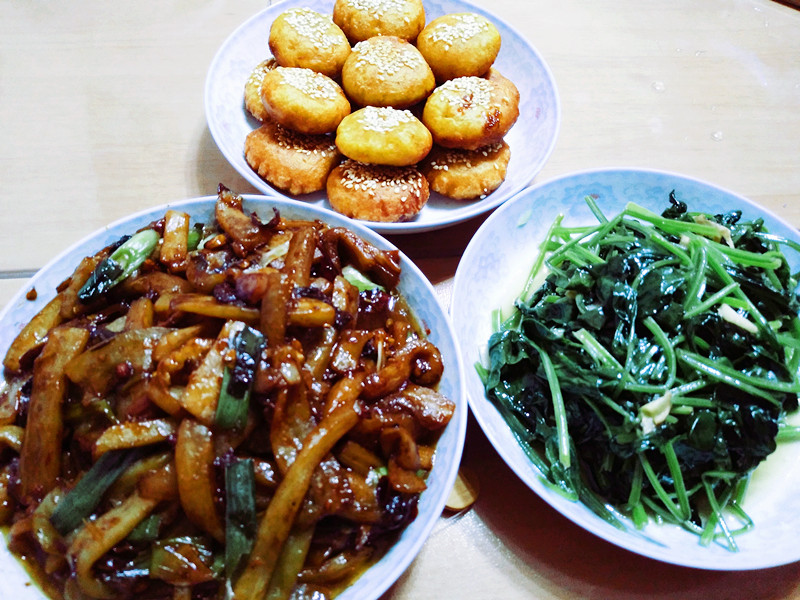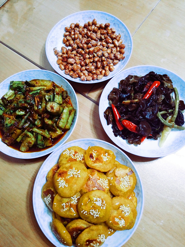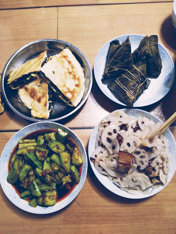 烙的韭菜盒子炒莲藕,还有我喜欢的蜂蜜粽子