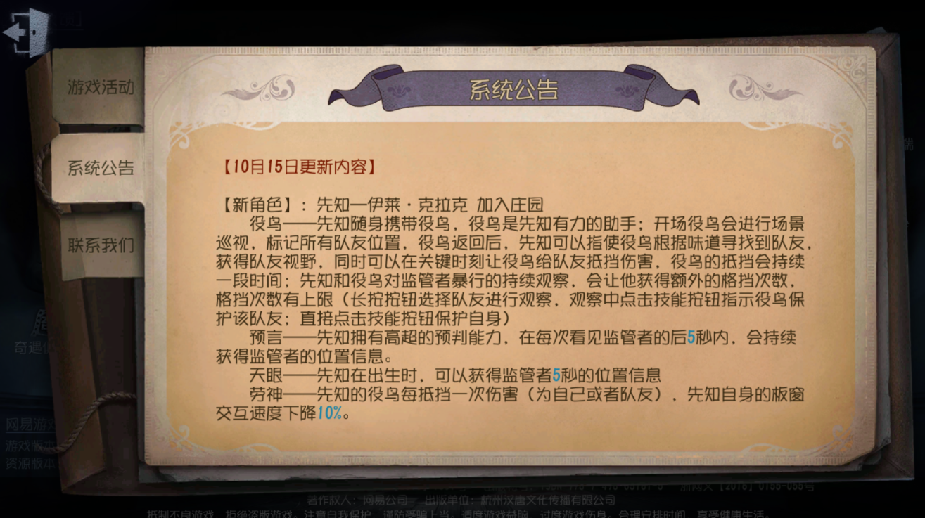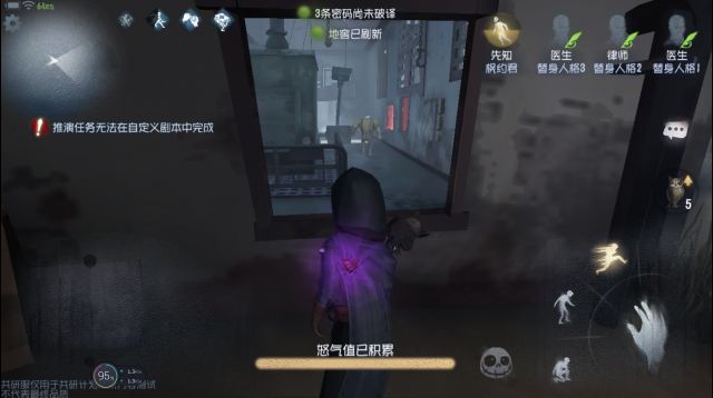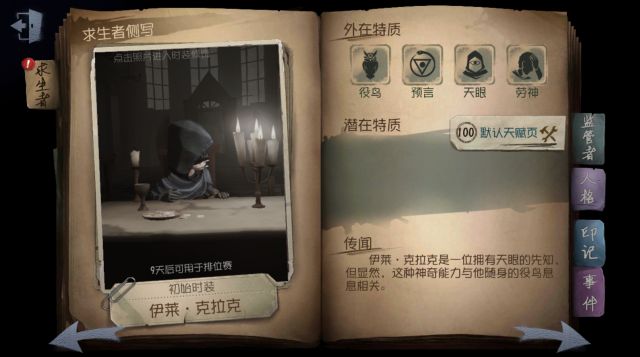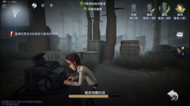 ·预言技能(每次看见监管者的5秒内获得监管者位置)似乎没实装(bug?)