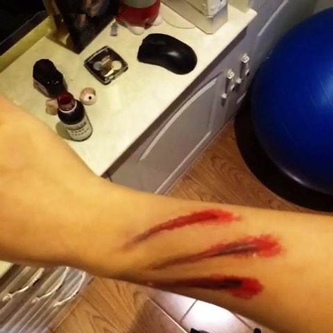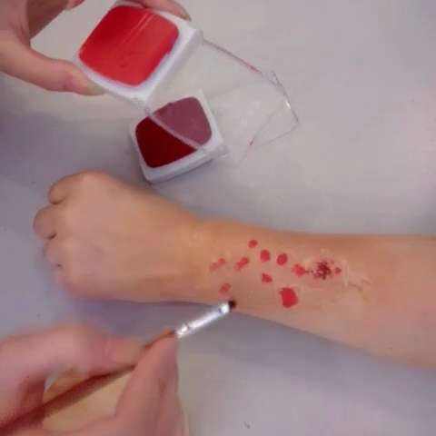伤口妆因受伤情况而各不相同,“伤口妆虽然是比较常见的特效化妆,但每次接到这类任务时,我们都要先问清楚,究竟是什么情况下形成的伤疤,枪伤、刺刀伤还是烧伤”,刘集说。