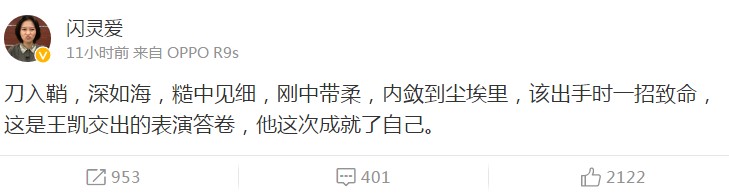 看完电影后,有观众对王凯做出了如此评论。