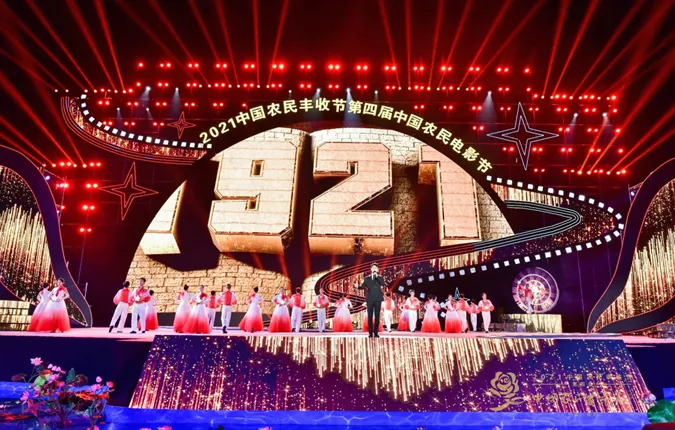 2021中国农民丰收节第四届中国农民电影节开幕晚会在河南省南阳市淅川县南水北调中线工程渠首隆重举办。全国各地的嘉宾、电影演员和当地5000多名群众欢聚一堂,共庆丰收,同感党恩。