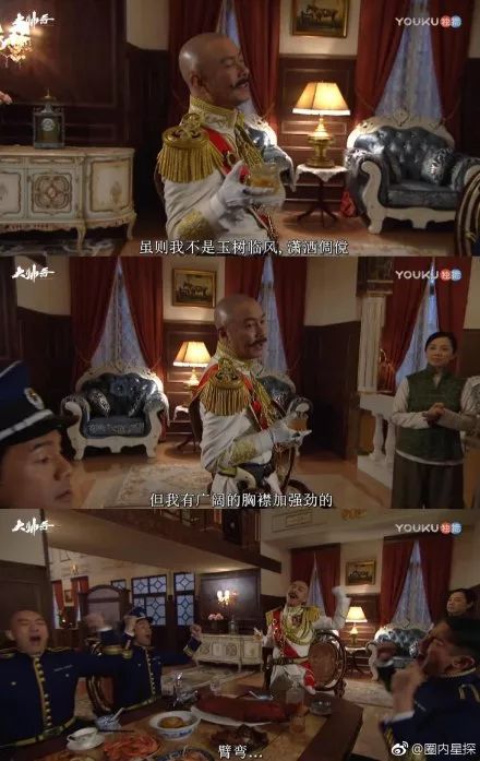大帅摆寿宴,这一幕戏趁机嵌入了张宗昌“三不知”的梗,不知有多少儿子,不知有多少小妾,不知有多少兵