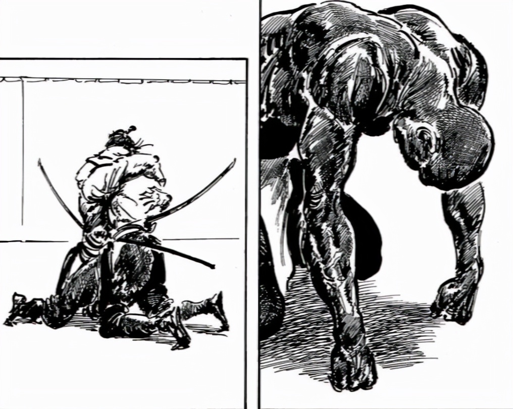 森秀树版《骏河城》有很多原创故事,感觉已经超越了原作本身的故事背景,比如“长鼻人”、“望乡”、“鬼无朋之介”这三篇,有一个一出生便是丑陋嘴脸的长鼻人,被人耻笑的活着,用布遮住面目,想过正常人的生活却不能够,于是发狠变成坏人无恶不作,其中一个被他杀害的女孩的父亲,来找他报仇,两人参加了骏河城御前试合比武。