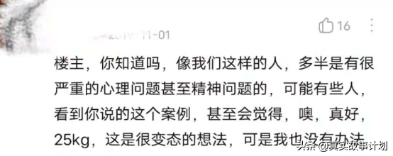 “我很恶心对吧?我自己也是这么觉得的,所以总觉得不如死了干净。所以虽然明知道可能会死人,但我就是觉得五六十斤很好,别的我不在乎。我这辈子是完了,现在有多久就舒服多久吧。”